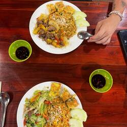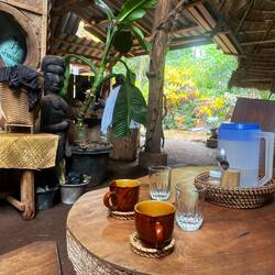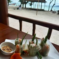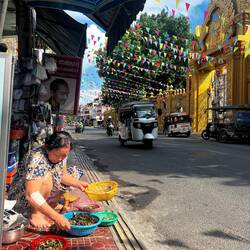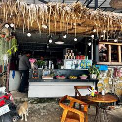 On the second day, we met again for breakfast and spent the afternoon in a cozy café where we ate, drank, and talked. Lara tried a local specialty dessert, „banana sticky rice“ while I went forBaca lagi