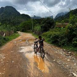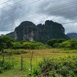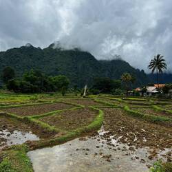 I rented a scooter (I wasn’t in the mood to rent a bike again, and the distances were too long anyway🙏🏽😅) because I wanted to explore the landscape around Vang Vieng. I drove about 50 kilometers north, where I came across farmers working in the fields, animals on the roads, a few local people, and a beautiful, wide, green landscape.🤗🌱