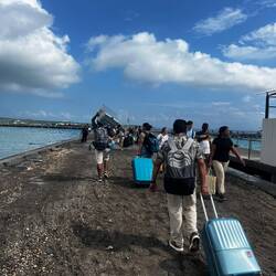 So, I took a scooter-taxi to the ferry terminal, which took me almost two hours, even though it's usually just a one-hour ride.🙄 At 1pm I took the ferry to the little but very famous Island Nusa Penida.🏝️ I chose the slow boat because, during breakfast, I met Lucas, who recommended it. He told me that sometimes the fast boats can capsize in rough waves—so I figured better safe than sorry.🙉🤭