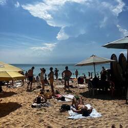 What I didn't know was that it's actually a very small beach, and even though I arrived in the morning, around 10:30 a.m., it was already very crowded and hard to find a spot to relax. I had imagined a peaceful place to rest and read, but the music was so loud that reading was impossible.😅 In the afternoon it started to rain, so I spent the time in a restaurant - eating, drinking, and thinking about what l'd like to do over the next few days.🙃