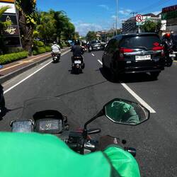 Later, I booked a Gojek (which is more common than Grab) to Ubud.🛵 Ubud is located in the jungle and is famous for yoga, spirituality, waterfalls, rice fields, and temples.😍 The ride took about 1.5 hours by motorbike. Sitting on the back with a heavy backpack wasn’t easy – and to make things worse, it started pouring with rain. (And it's not even the rainy season 🙄😂)