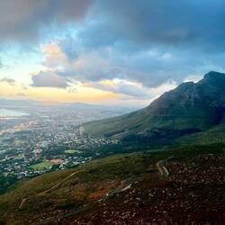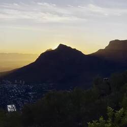 De Table Mountain isch eis vo de bekanntische Wahrzeiche in Kapstadt. Demit mir rechtzitig zum Sunneuntergang on the Top of the Mountain sind, hanich mich mitere Gruppe mit fascht nur brasilianischeBaca lagi