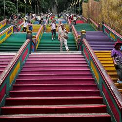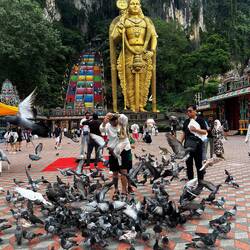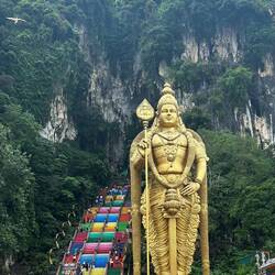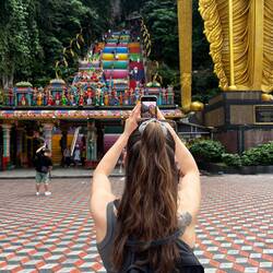Because of the traffic, we thought it would be easier to go by train to the well-known Batu Caves. It’s probably definitely easier and more practical to take the train, but it took us nearly 4Leia mais