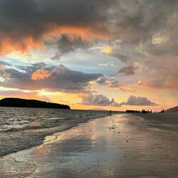 On our first day in Penang, we had planned a beach day. So we went to the beach but after 45 minutes, it started to rain. We went back to our apartment, checked the weather, lost our temper for aLeia mais