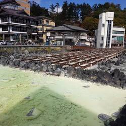 Heute ging es von Ueno (Tokyo) nach Kusatsu ins Landesinnere. Das erste, was auffällt ist, dass sich hier das Laub schon mehr gefärbt hat als in Tokyo.