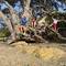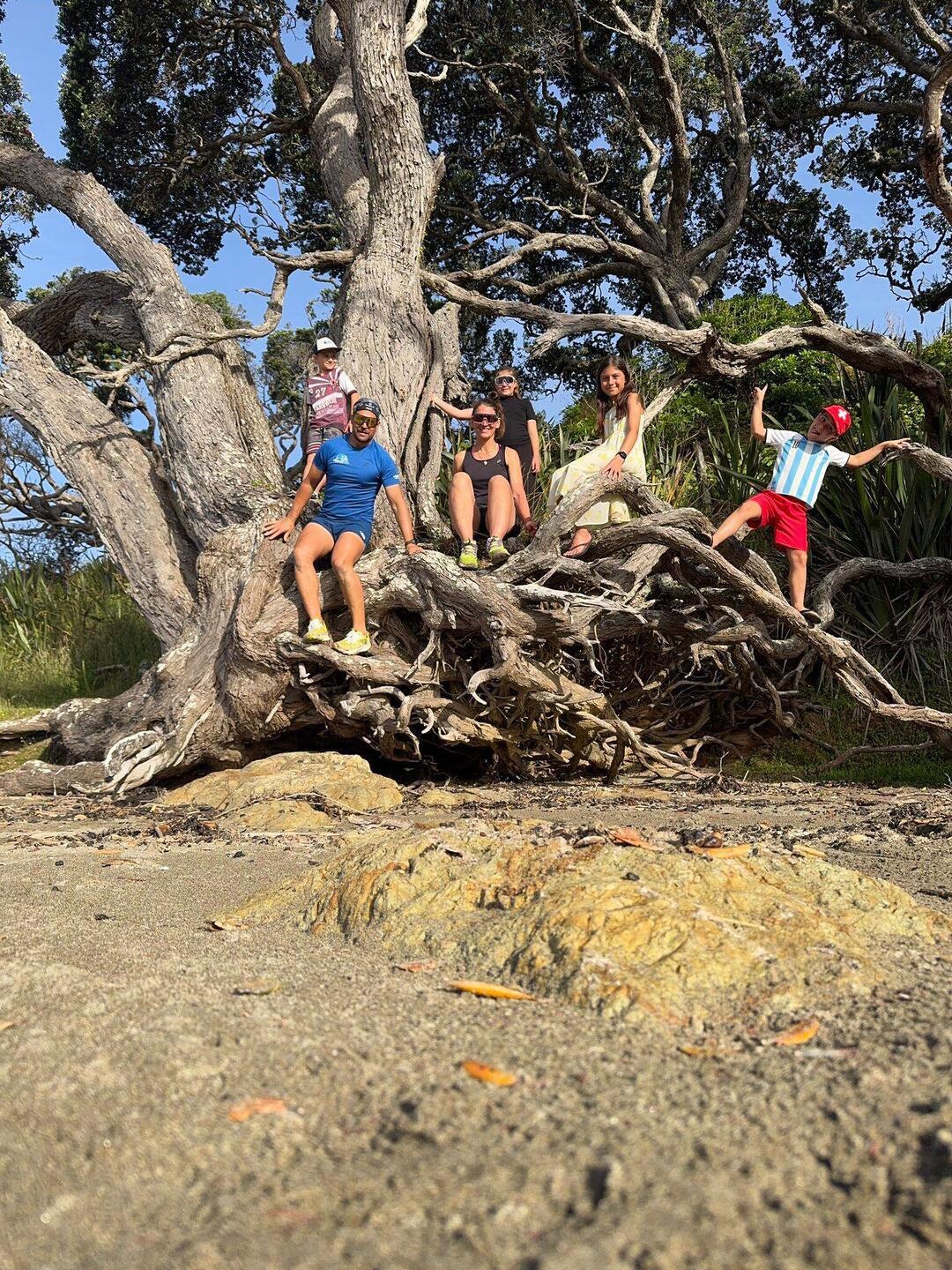 Die ganze Familie auf einem Baum platziert, die Kamera im Sand ausgerichtet, und dann:
