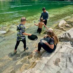 Kaum im Zentrum angekommen, sind die Kinder direkt mit den Stingrays geschwommen.