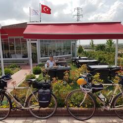 Stayed in Tekirdag last night, a city of 175,000 with a modern university and an attractive waterfront on the Marman Sea. Took a hotel because we are both fatigued from 50 mile days in heat. Today,Leia mais