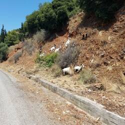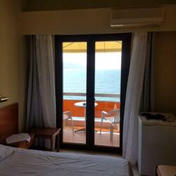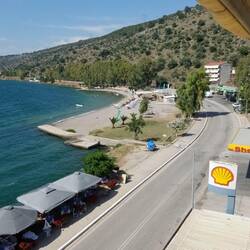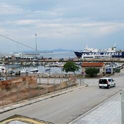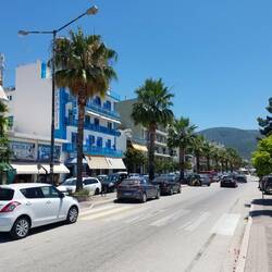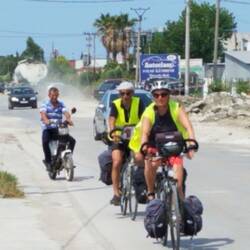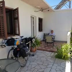 Susan was getting readings of 100 degrees off the pavement on her bike computer. Fortunately, we found another good place at a reasonable rate in Mesolongi to lay up - we're beat. We will look st theLeia mais