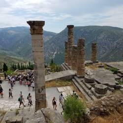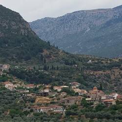 Big climb up to Delphi, which had a 360 degree curve thrown in with switchbacks that can be seen in one of the photos. Delphi, according to the ancient Greeks, is the center of the universe, the exactLeia mais