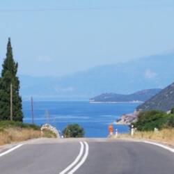 Decided to skip Bulgaria and follow tip of Aegean east to Greece. 50 miles of riding freeway shoulder inLeia mais