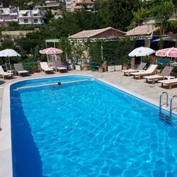 We need some rest so we stopped midday at a really nice hotel with an ocean view. We are hanging out at the pool. The Albanian coast caters to toursts; we regularly see tour buses and saw four otherLeia mais