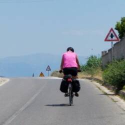 Slogged into Albania on a hot day. We are going to try to hug the coastline to stay out of the mountains, which are gruelling, but so far, Albanian secondary roads are one-laned and potholed. We'llLeia mais