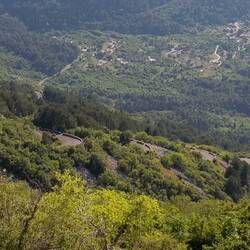 Quick miles early in the day then got walloped in the mountains. Big run down switchbacks out of the mountains into a wonderful village with a great hotel.