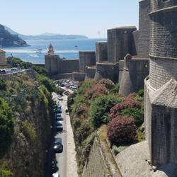 Our plan was to tour the walled city of Dubrovnik and stay for the night. Dubrovnik is beautiful but it was like Disneyland on steroids. We looked at the throngs of people, talked to a lovely coupleLeia mais