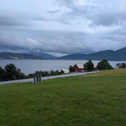 Our final stop took us high above Molde to the Varden Viewpoint, which offers panoramic views of the town, its peaks, with some snow remaining and the fjord below. As if to reward our journey, the sun broke through once more, casting light across the shimmering water and mountain ranges, giving us a perfect photo opportunity and a fitting end to our scenic adventure.