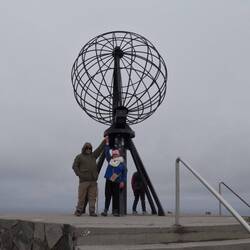 At the plateau, we stood at the famous Globe Monument, a symbol marking the top of Europe The cliffs dropped steeply into the Arctic Ocean, reminding us just how far north we’d come.