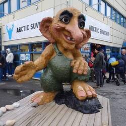 Right outside the Arctic Souvenir shop, we saw a giant troll statue. It had a big nose, big feet, and a cheeky smile—great for a photo and a good laugh!