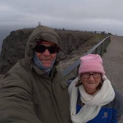 As we cruised past North Cape early this morning on our way into Honningsvåg, Joanne and I were on the treadmill—so yes, we’re claiming we walked around the North Cape! A fun start to what turned out to be a memorable Arctic adventure.