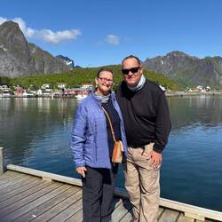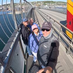 Joined by our American cruise buddies Sandra and Tommy, we strolled through the town, soaking in the mix of traditional wooden buildings and modern Arctic architecture. Together, we walked the iconic Tromsø Bridge, taking in panoramic views of the harbor and surrounding snow-capped peaks.