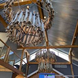 Near the ship, as we returned to our hotel of the sea,we saw cod heads hanging to dry. It’s part of Norway’s fishing tradition—strange to see, but very real and interesting.