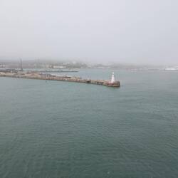 Returned to Dover to rejoin our ship, completely different weather the sea mist clouded the white cliffs and the winds had an English Channel chill.