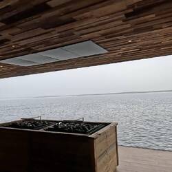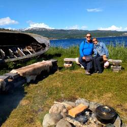 Just beyond the museum, trail we stumbled upon a Nordic-style campfire circle by the water’s edge. With reindeer hides draped over rustic benches, an iron kettle warming over the open fire, and a half-buried boat as a backdrop, it felt like stepping into a storybook. We paused here, soaking in the view, sipping on the atmosphere, and simply enjoying the stillness.