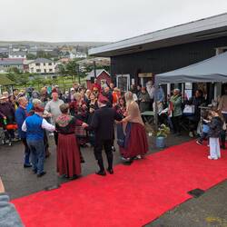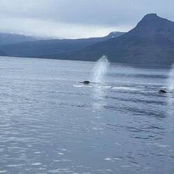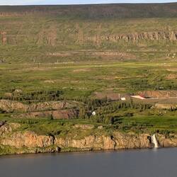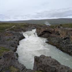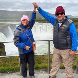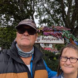 Our day started with a walk of the unopened cbd. After our ship breakfast, Today we took a ship excursion and were treated to a stunning mix of nature, myth, and everyday life in Iceland. Under a sky brushed with soft clouds and sunshine, we stood at the edge of Goðafoss — the "Waterfall of the Gods." The powerful falls thundered into the river below, framed by black lava rock. According to legend, Iceland’s conversion to Christianity was marked by the throwing of Norse pagan idols into these very waters.