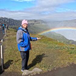 Kel couldn’t resist testing the water temperature near the falls. Verdict? Bone-chilling cold! But it added to the thrill of the moment. With a brief window of Wi-Fi, we managed to send some messages back home. The kids messages left us chuckling. The blend of foggy landscapes, icy water, and warm family reactions made it a port stop to remember.