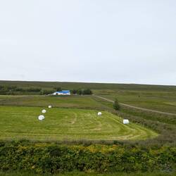As we travelled through the valleys, we were struck by a different kind of beauty — one rooted in tradition and the rhythm of rural life. The fields were alive with the season’s work, blanketed in white-wrapped bales like pillows scattered across green beds. These bundles of freshly harvested hay and silage are critical for feeding livestock during Iceland’s long, dark winters.