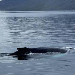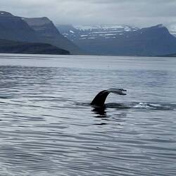 But as we approached the Icelandic coast, the fog slowly lifted. The clouds began to part, revealing streaks of blue sky and golden light dancing across the snow-dusted mountains. The dramatic landscape of Iceland unfolded before us — green hills, rugged cliffs, and the small port town of Husavik.