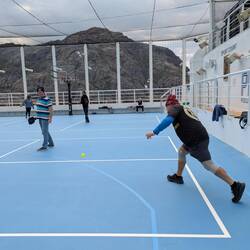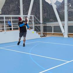 Kel got to play pickleball in Greenland it was 7 degrees almost no wind only from the movement of the ship.