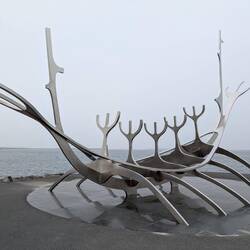 To finish our loop, we strolled back toward the harbor, making sure to pause at the striking Sun Voyager sculpture — the perfect photo opportunity with Reykjavík’s bay still grey sky's.