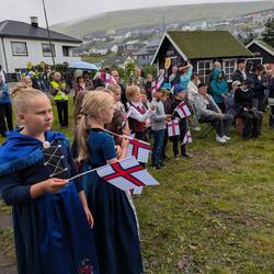 The Faroe Islands, souvenir state of Denmark. Overcast sky's a little drizzle on us today.