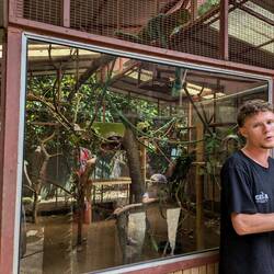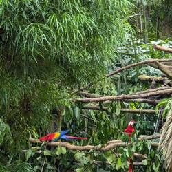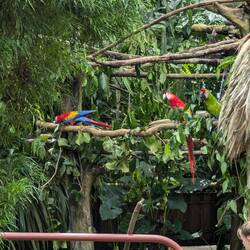 Auf dem Weg zum Flughafen Papageien im Baum entdeckt