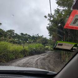 Da ist der Wagen bei der matschigen steilen Straße nicht hoch gekommen