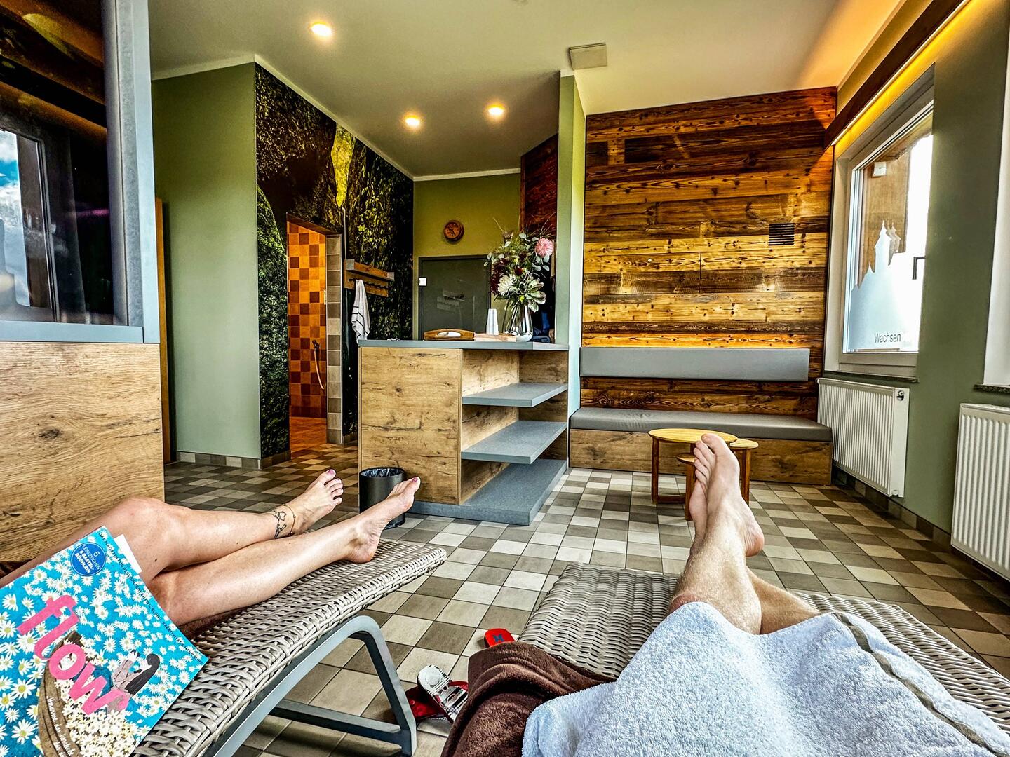 Schön nochmal in der Sauna genießen.