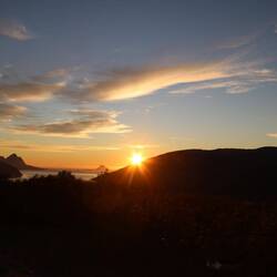 Leckeren Kaffe und Waffel im Kaffee Naust. Die herrliche Sonne geniessen, vorallem wenn es sie auf den Lofoten gibt. Ab Richtung Lødingen, wo wir gleich die Fähre für nach Bognes erwischt haben.Les mer