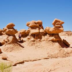 Jetzt eine Dusche das wärs. Der Goblin Valley Statepark liegt auch gleich neben an. Leider ist der Campingplatz aber komplett ausgebucht. Wir dürfen aber dennoch die Duschen benutzen. Also schnell noch mal durch die kleinen Steinkobolte gehuscht und dann endlich die Dusche!