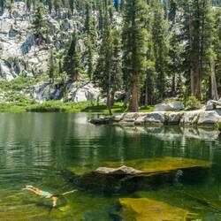 Da wir sehr spät ankamen, und der Eintritt für den Badestrand immer noch 10$ kosten sollte, nahmen wir eine nächtliche Erfrischung im Fallen Leaf Lake und übernachteten die erste Nacht wild im Wald. Am nächsten Morgen konnten wir einen sehr schönen Campingplatz ohne alles, aber mit Strandzugang, für 45$ die Nacht ergattern. Der Lake Tahoe gehört zu den beliebtesten Bergseen der ganzen USA. Vor allem im Winter kommen tausende von Menschen um für 180$ pro Person und Tag, Ski fahren zu können. Die Seilbahn fährt natürlich auch im Sommer. Aber die 56$ pro Person sparten wir uns.