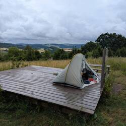 So schön der Abend am Gillerbergturm war, so ernüchternd der Morgen, Regen und Nebel dazu unangenehmer Wind. Am Abend hatte ich noch nette Gesellschaft die mir Pizza und ein Bier spendierten.Read more