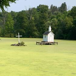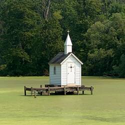 PengembaraYep - ziemlich flach und viele Algen…. die Kirche ist gelistet als "road side attraction" = viele Jokes, um irgendwie die Leute anzulocken 🤪