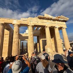 Today was a big day of walking and exploring. Our morning started going straight to the Acropolis. We were amazed at how many people were there. It was like a human traffic jam walking upto the top ofLæs mere