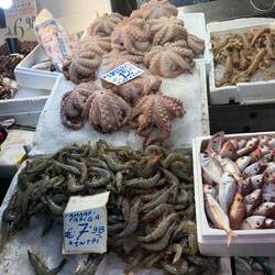 After a beautiful breakfast we stumbled across the fish and meat markets. So many different kinds of fish and shellfish but it all had a distinctLæs mere