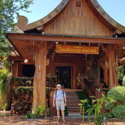 Eventually we arrived at the beautiful Vongburi noble house, also known as the pink mansion, a teak building in the gingerbread style, built by the son of a former ruler. We strolled round, imagining what it must have been like to live here at the end of the nineternth century.