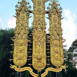 The buildings here were so different from one another and there was do much to see, that combined with the heat, it made you feel giddy. So we opted to walk through the cooler back streets and a covered market to reach the Phra Chamadevi monument. This was a small park decorated with thousands of brightly coloured lanterns and a magnifucent statue of the bold queen who founded the city.