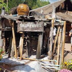 After a brief visit to the banana market on the edge of Kamphaeng Phet town, which also sells brooms and basketwork and plants and pottery, where we watched crisps and banana chips being made and bought a couple of bags to keep the business going, we found our boutique hotel and quickly signed in.