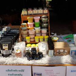 The mountain salt is found in natural ponds and is extracted in flat pans heated over log fires in little huts throughout the village. This is sold to tourists in various forms, as soap and bath salts and body scrubs as well as for cooking. The local wampee fruit, black organic rice and herbs are also on sale . There are plenty of restaurants along the street.
