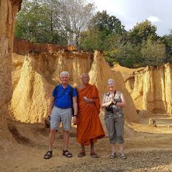 Finally we arrived at the Pha Muang Phi Forest Park, where more strange formations known as ghost pillars can be visited. We had the good fortune to meet a family with two Buddhist monks in their wake and one in them was all for having a photo taken with us.
