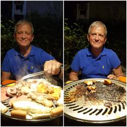 The night market area was not quite what we were looking for, but we happened to find a quirky restaurant with tables and chairs fashioned from old trees and ordered a Chang beer. They were offering barbecue meals to cook on gas ovens on your table, so we decided to give it a try and were pleasantly surprised. A couple sitting at a table nearby who we stopped to chat to presented us with a bag of small donuts purchased from the night market.